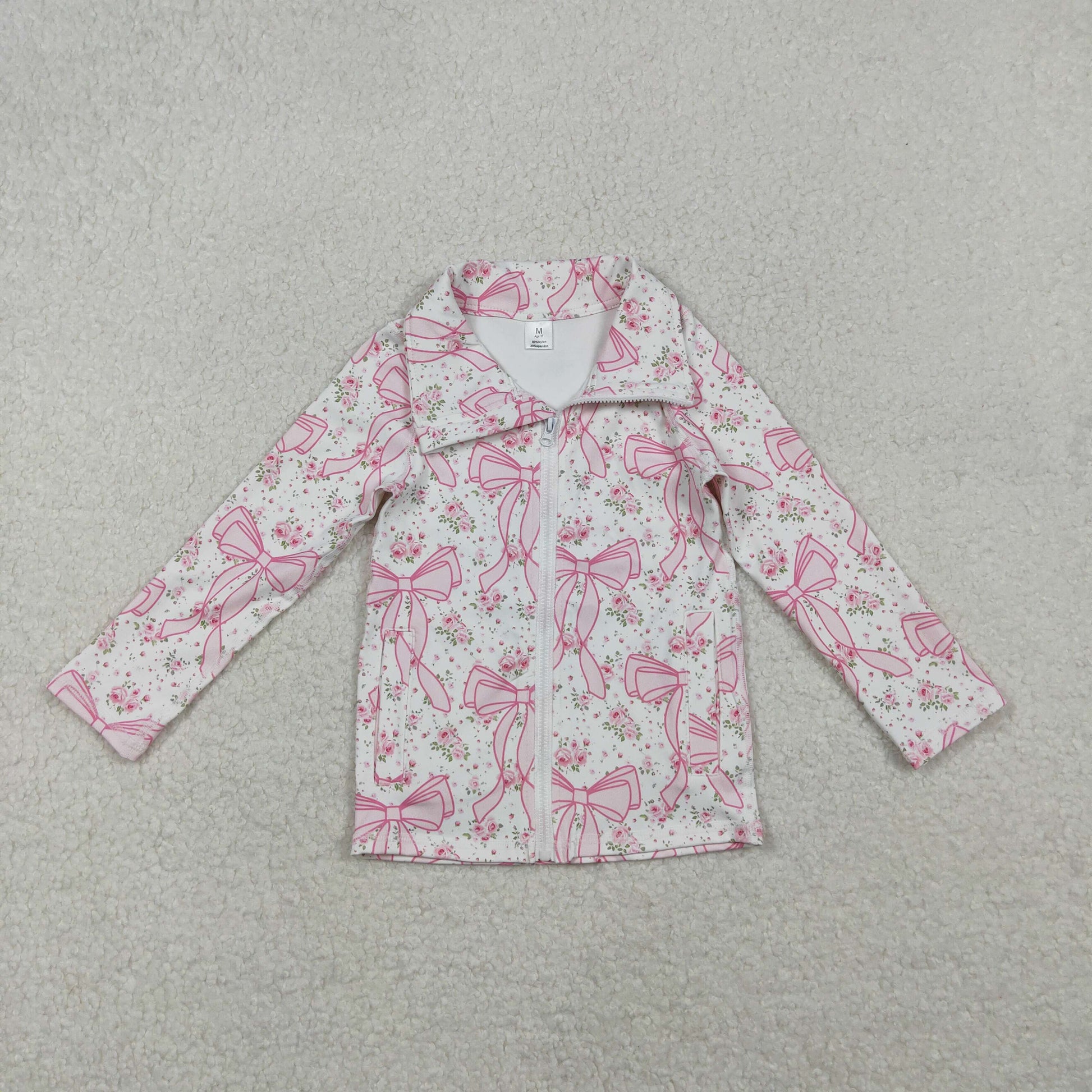GT1082 baby girls pink flower bow zipper long sleeve top yoga(Deadline June.26)