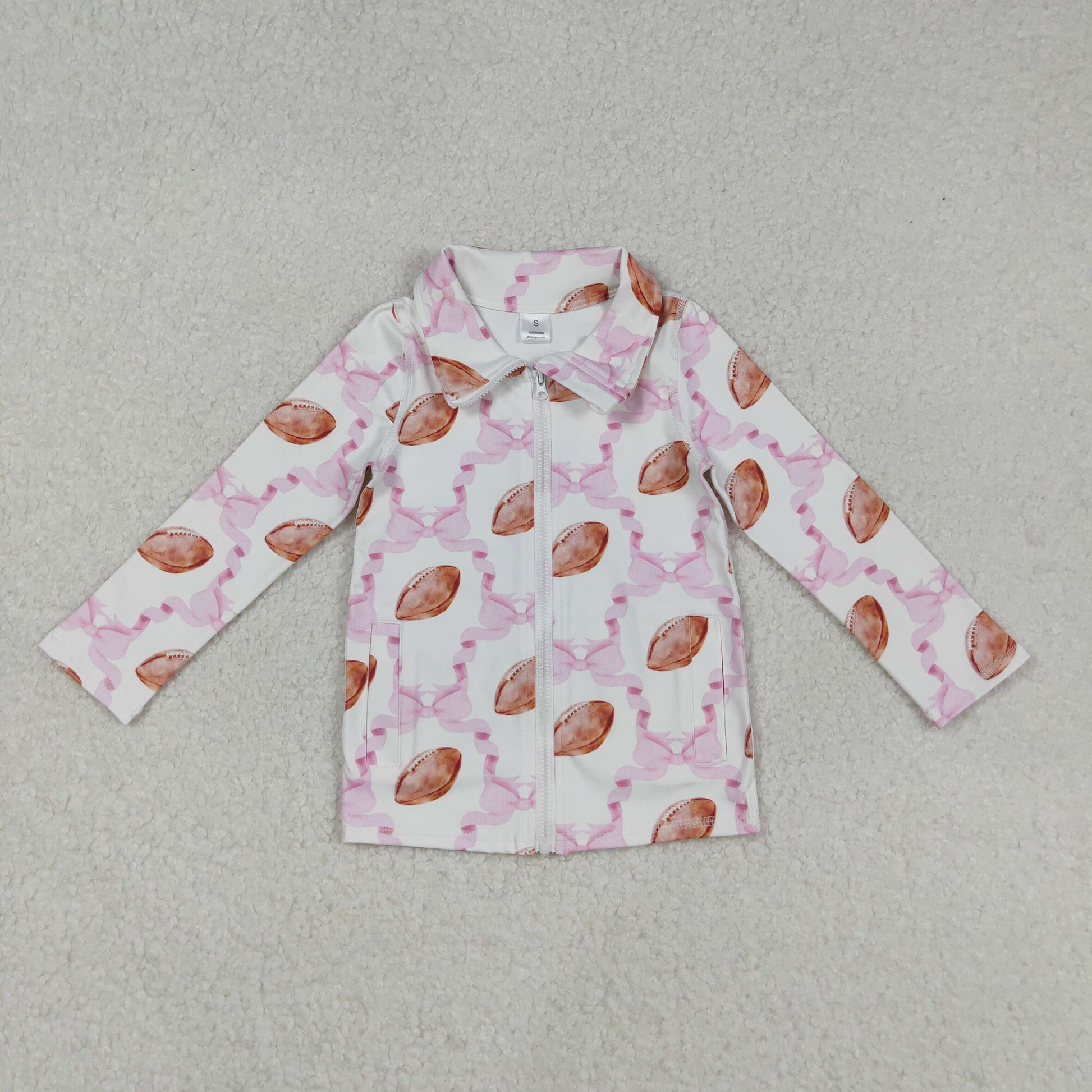 GT1088 baby girls football pink bow zipper long sleeve top yoga