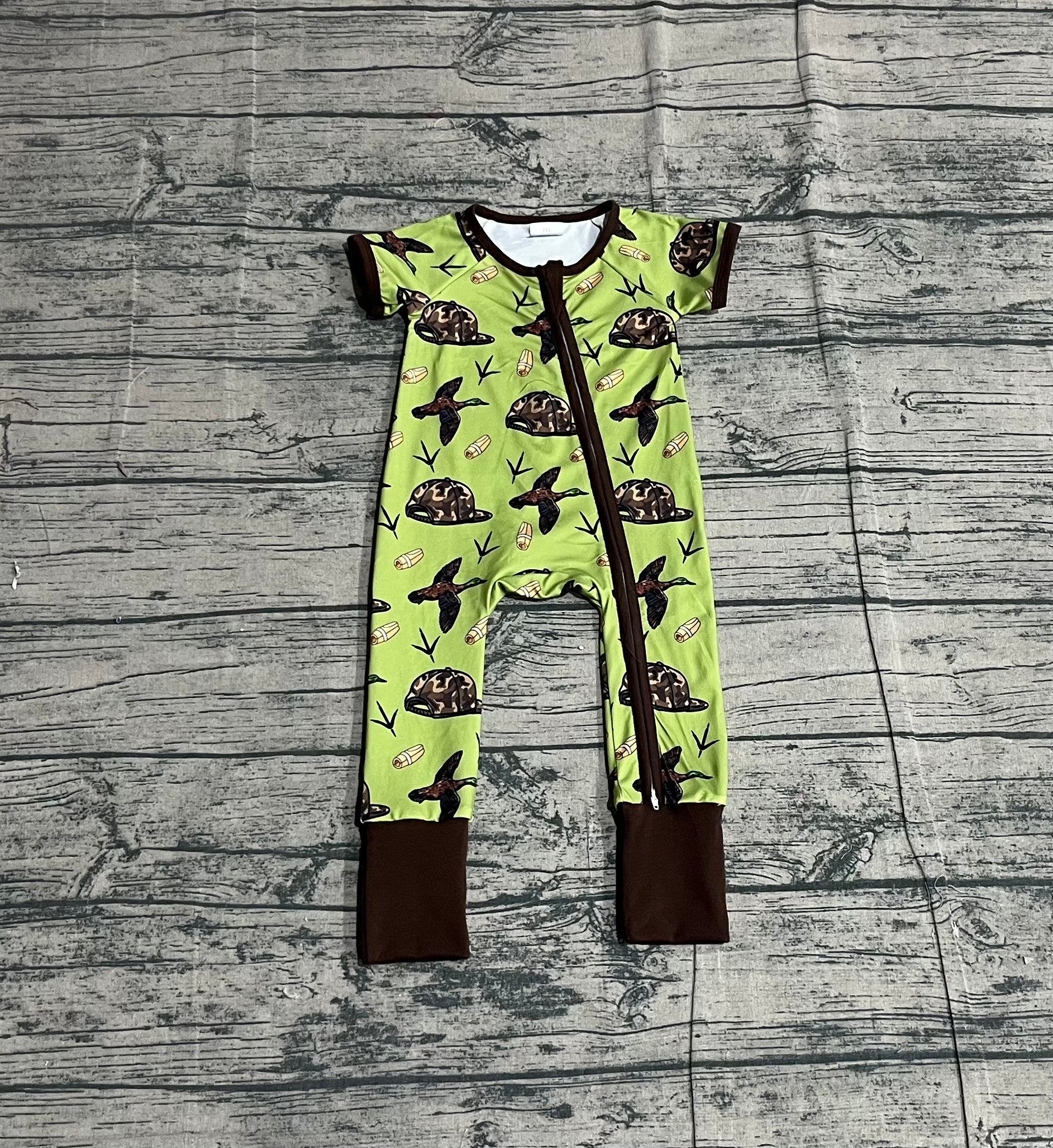 Pre-order SR3499 baby boys duck hat green short sleeve zipper romper