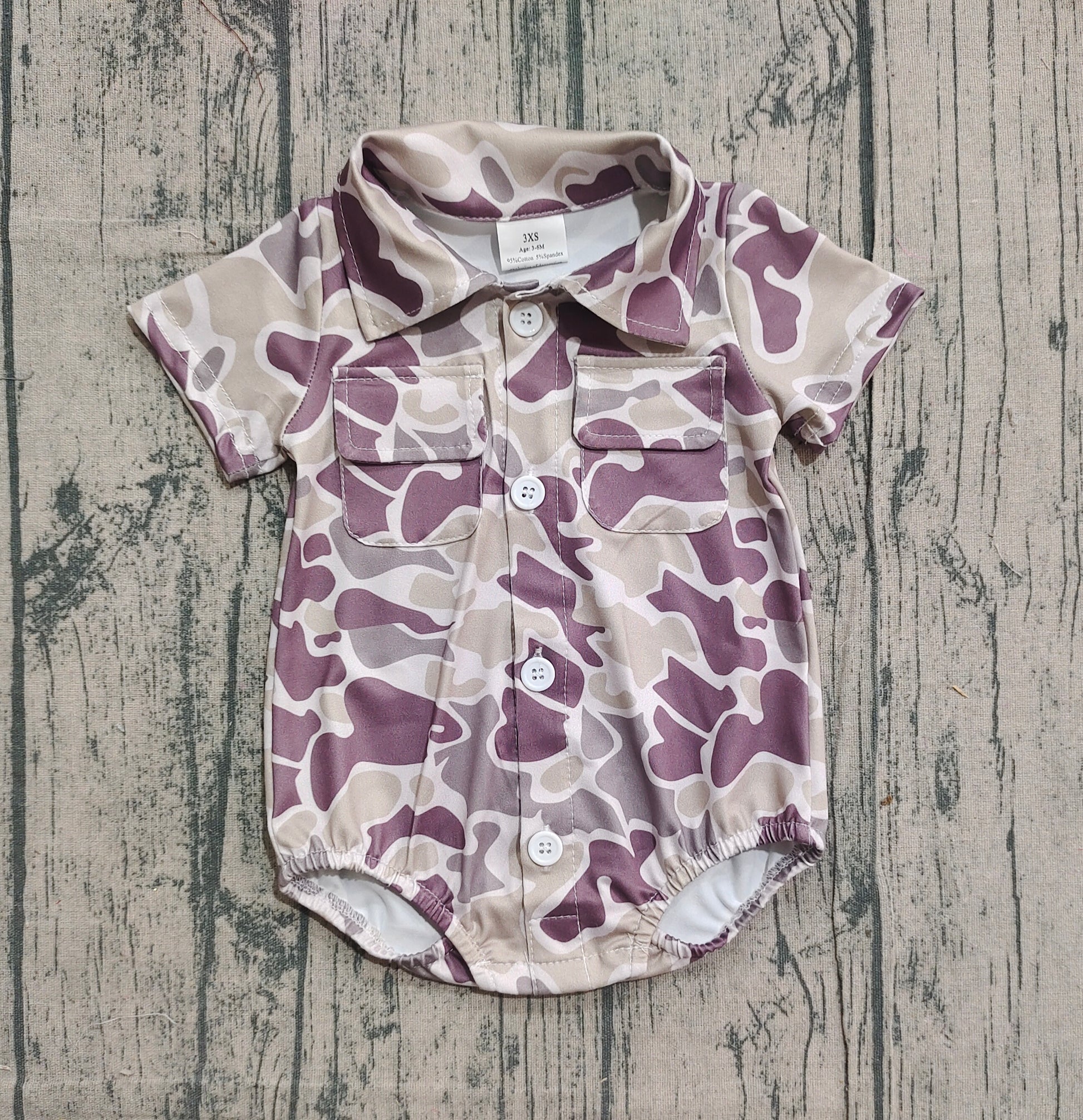 Pre-order SR3652 baby boys camo pocket short sleeve button romper