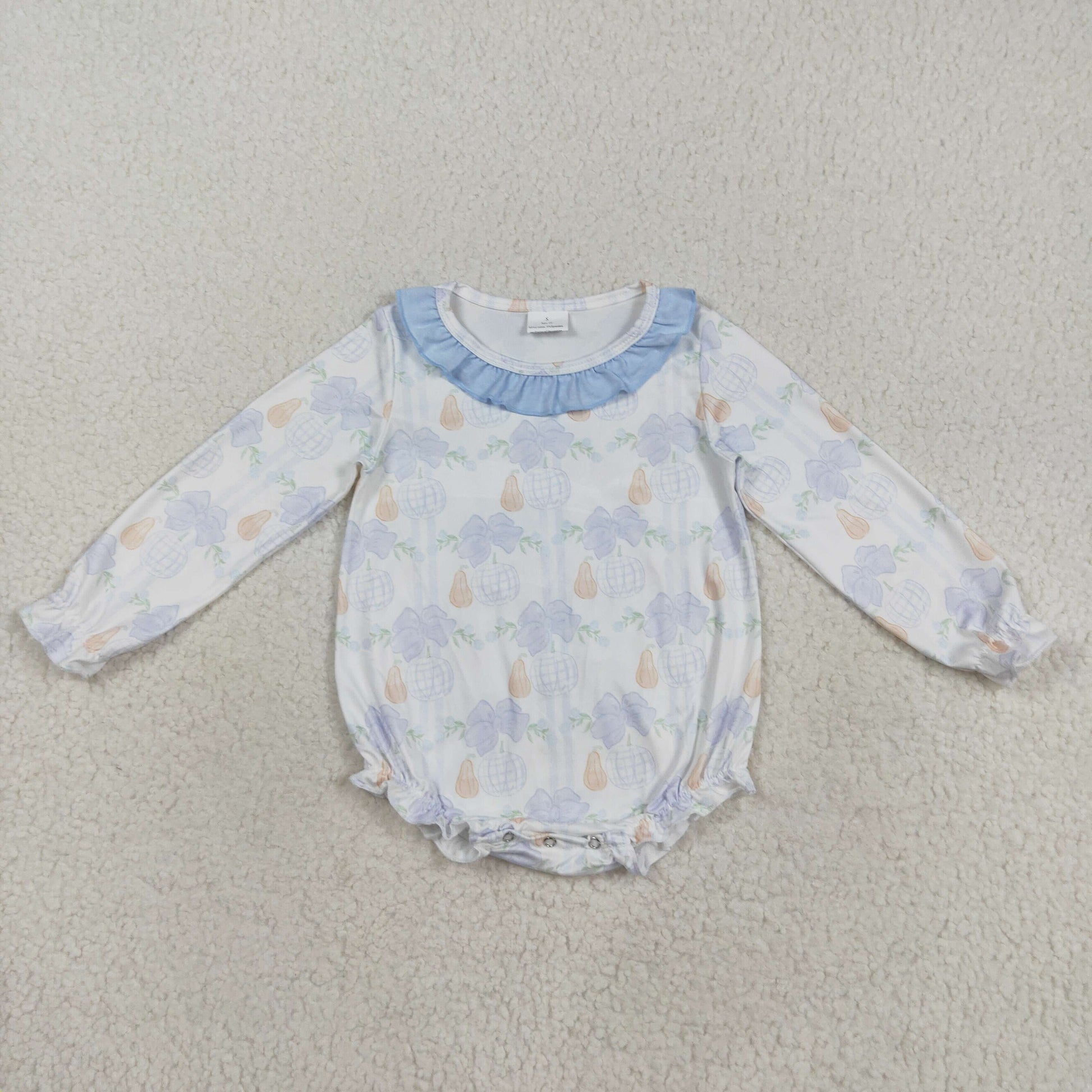 LR2312 baby girls long sleeve Halloween pumpkin blue romper