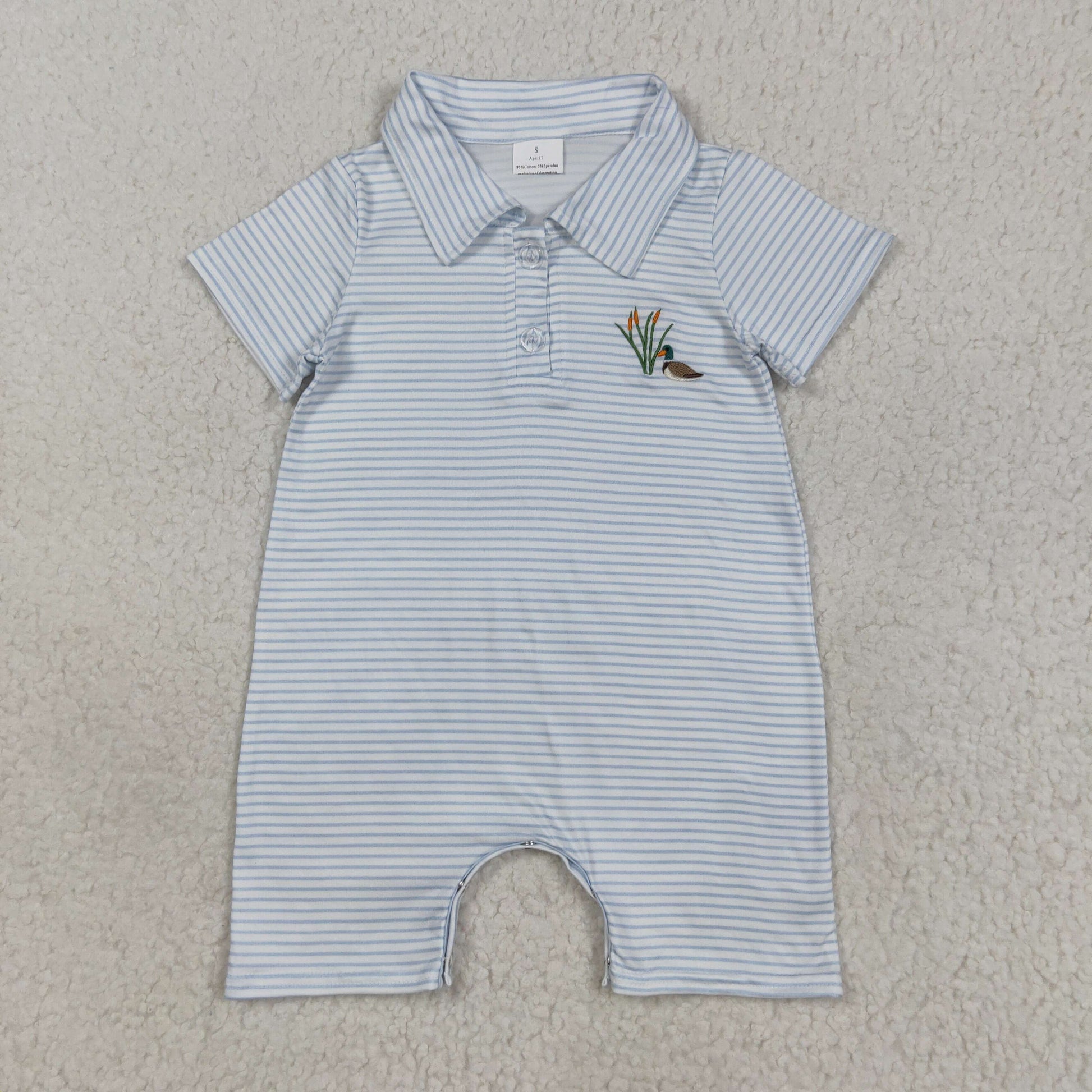 SR3149 baby boys stripe blue button duck romper embroidery